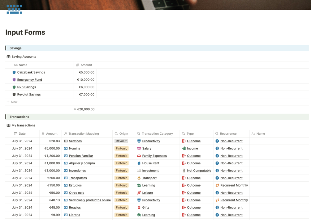 - Customizable Input Forms: Quickly and easily input transactions and update your bank account balances with user-friendly forms designed for efficiency and accuracy.